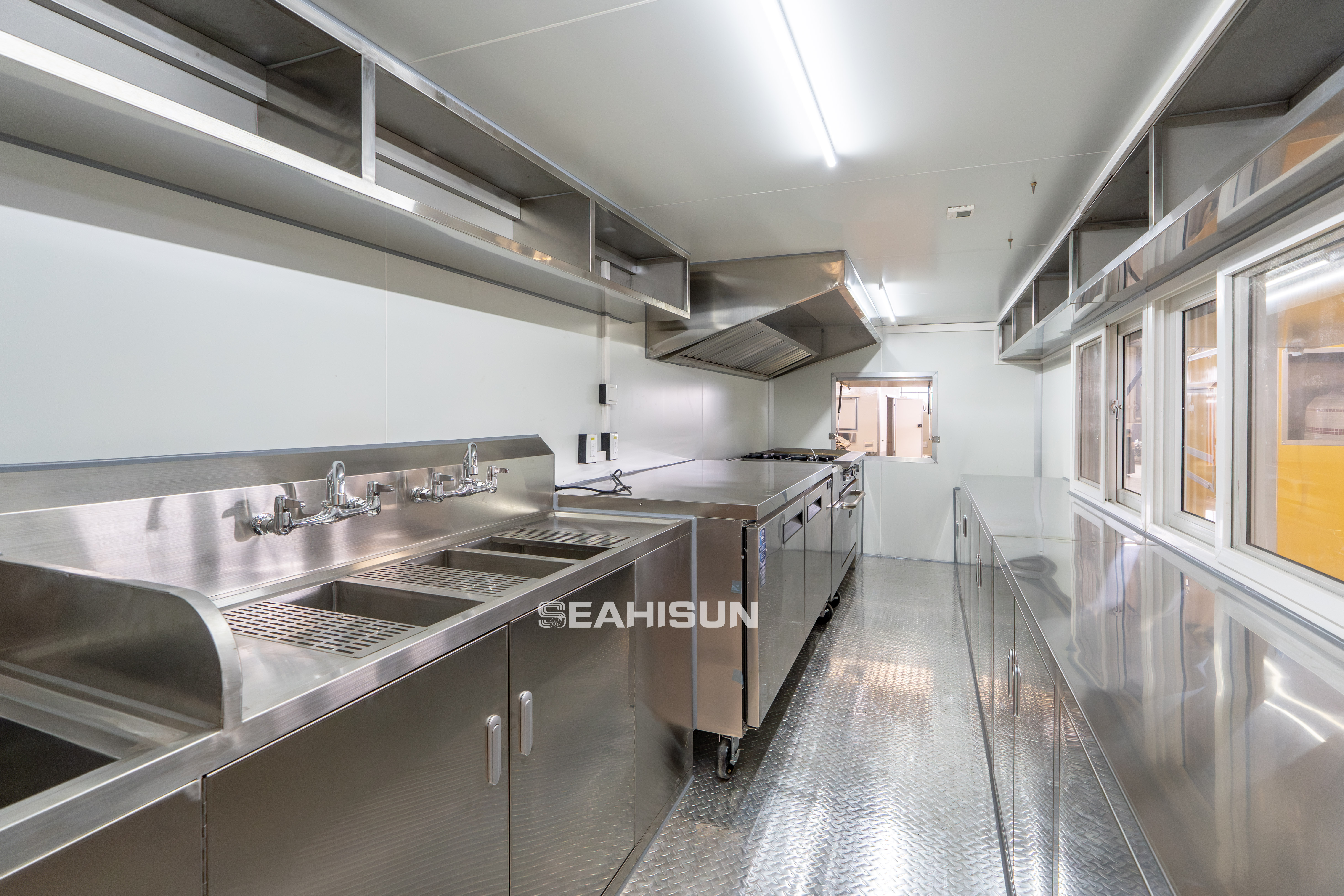 内部设计 内部可容纳冰箱、咖啡机、油炸锅、煎锅、排气扇、烤箱等各种烹饪设备,满足不同的商务需求。