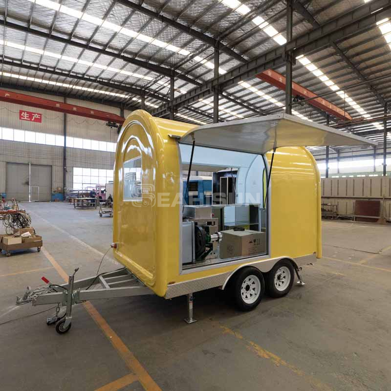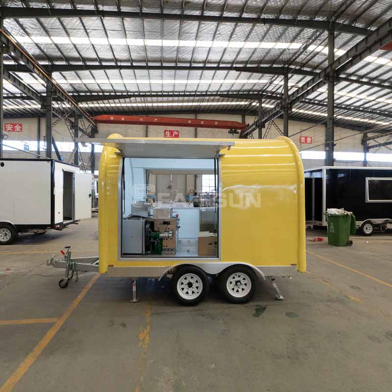 拖车长5.5米,内部空间宽敞,可容纳更多设备和物资。这使得经营者能够提供更丰富的食品种类并同时接待更多的顾客。