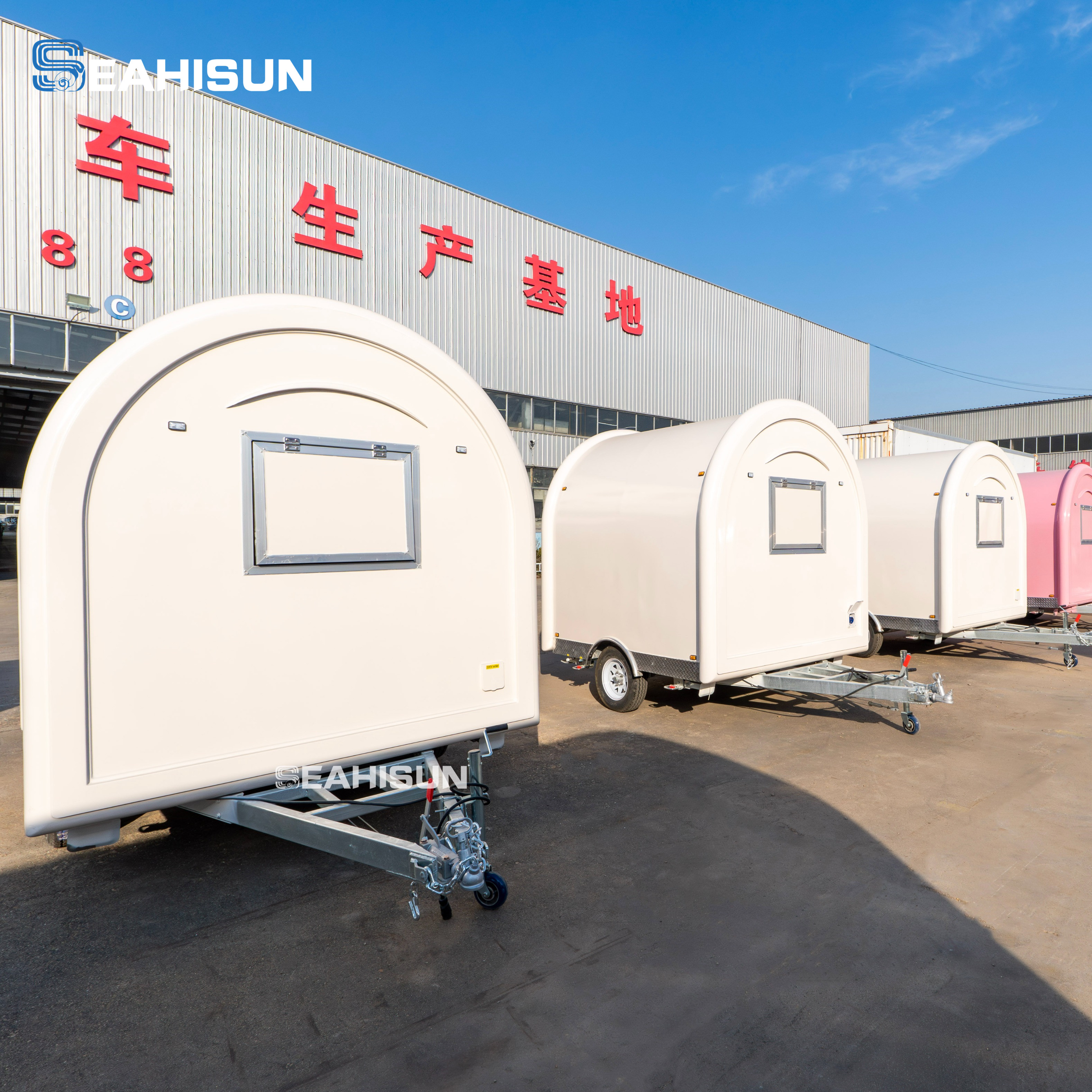 服务窗:拖车包括一个服务窗,侧面带有遮阳篷,方便客户互动,同时提供遮阳和通风。
