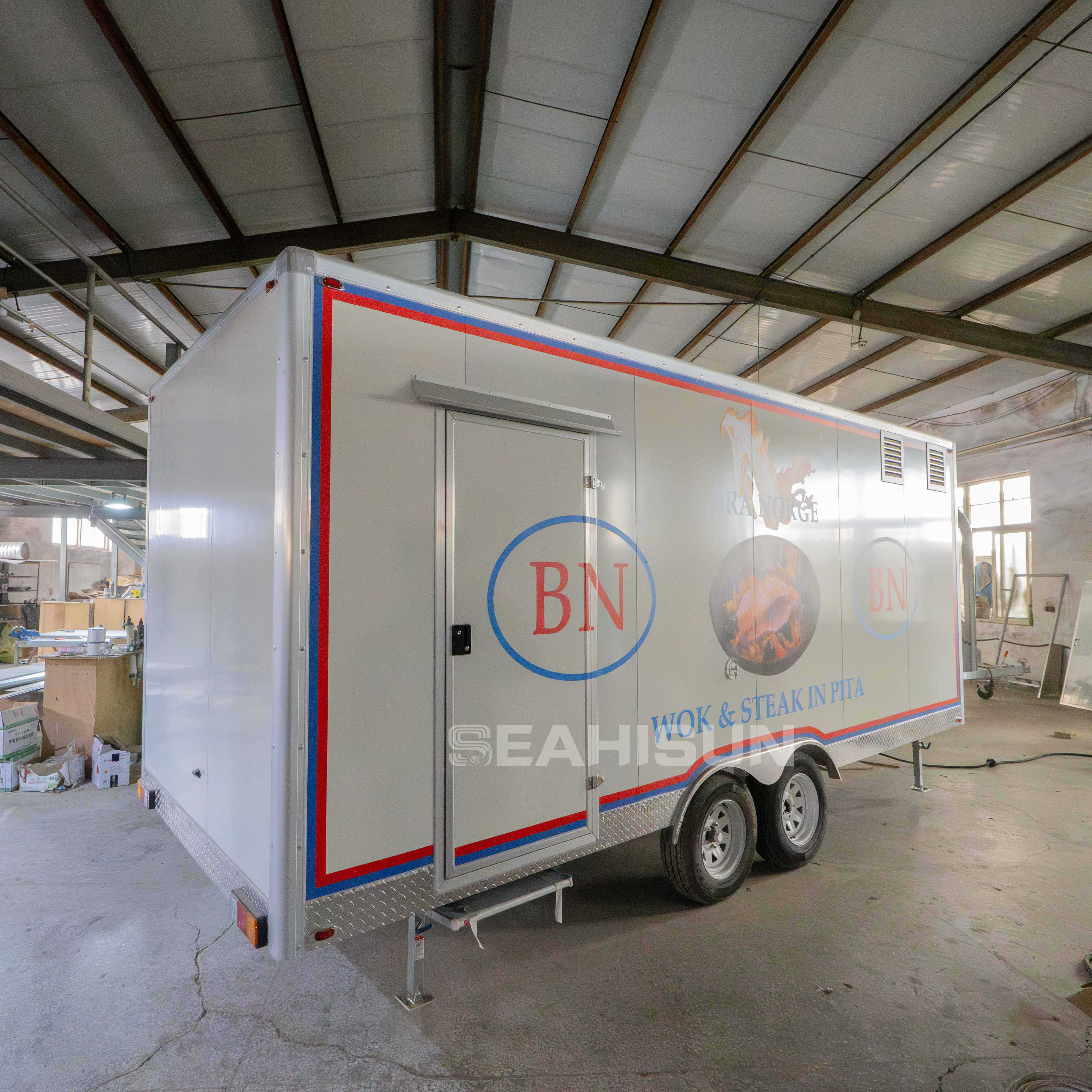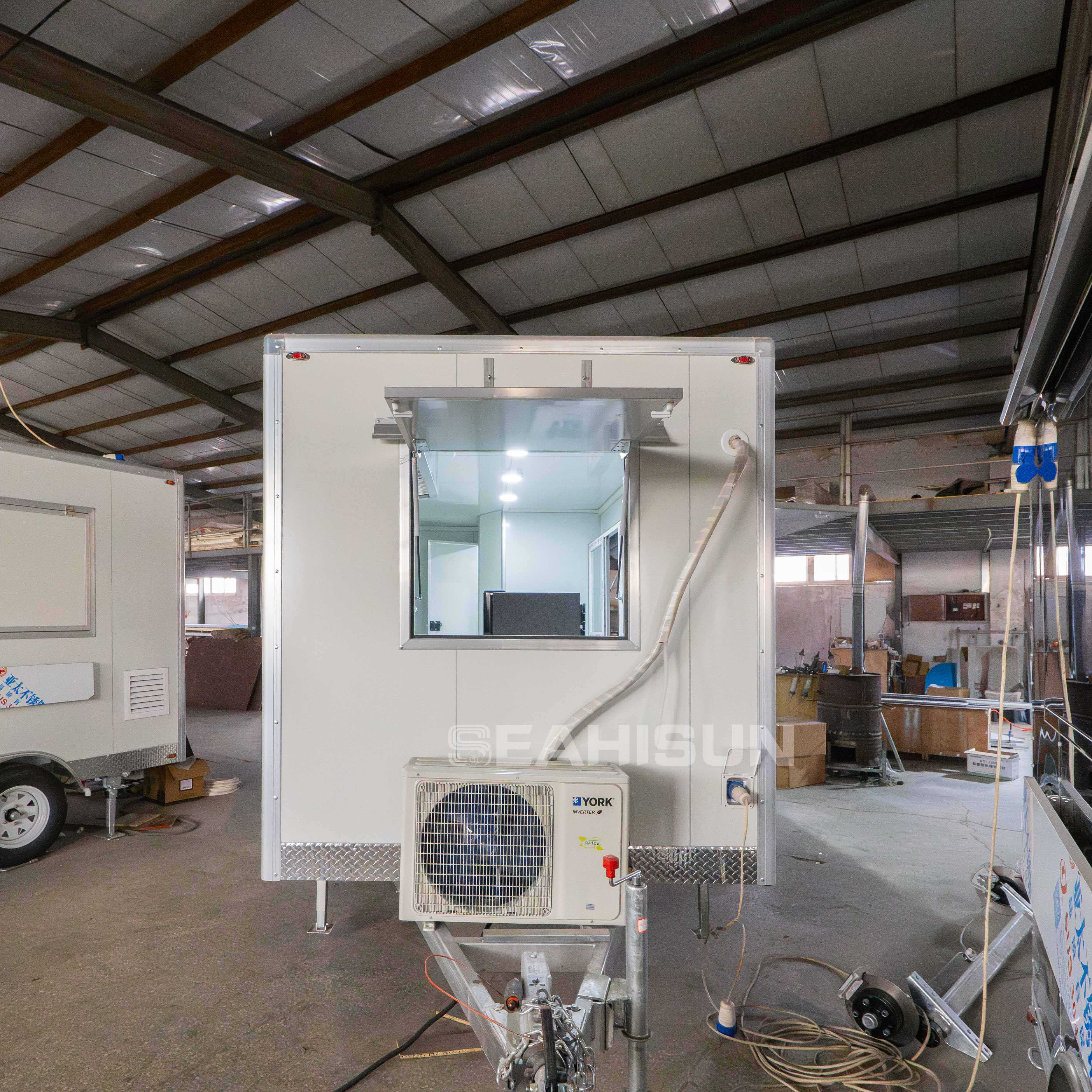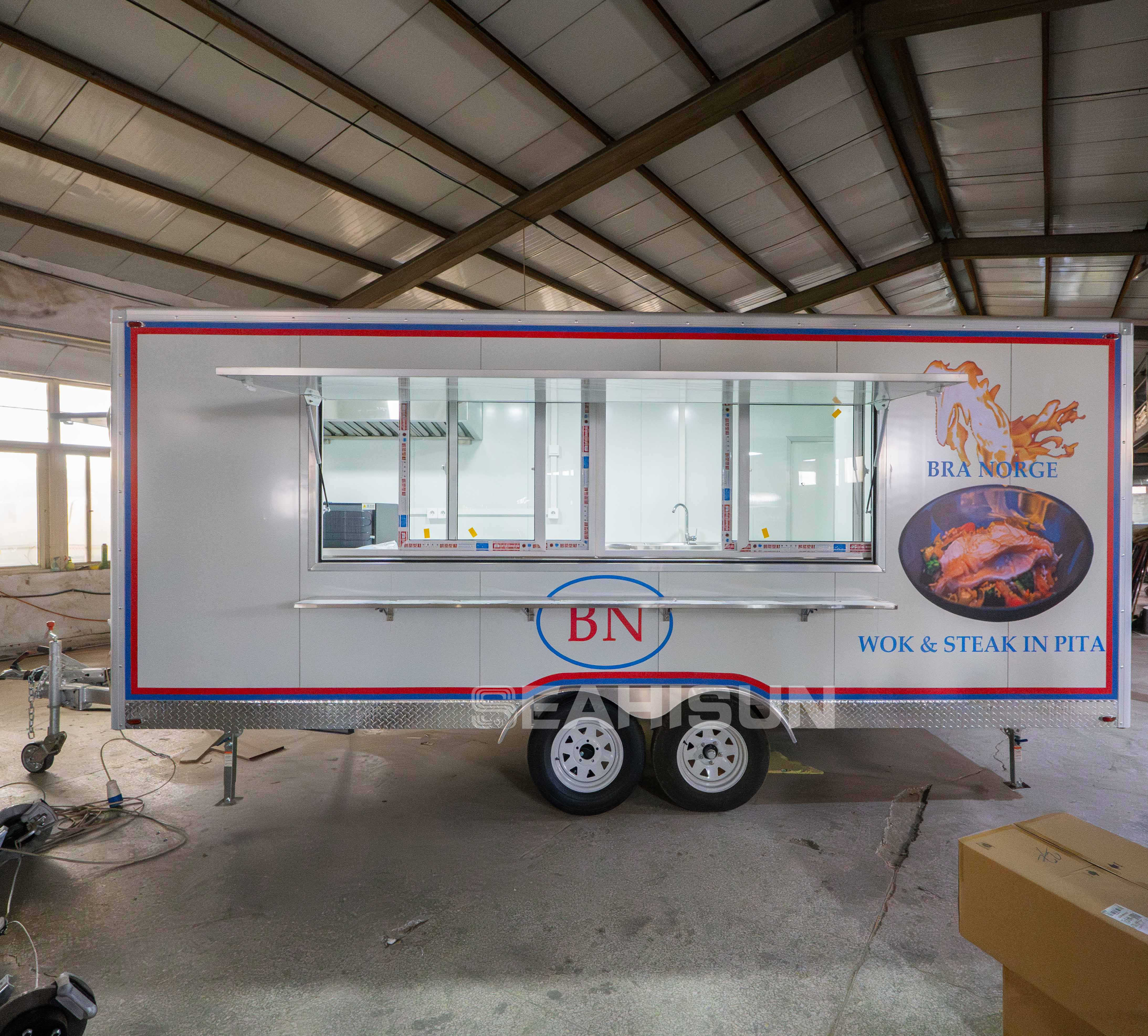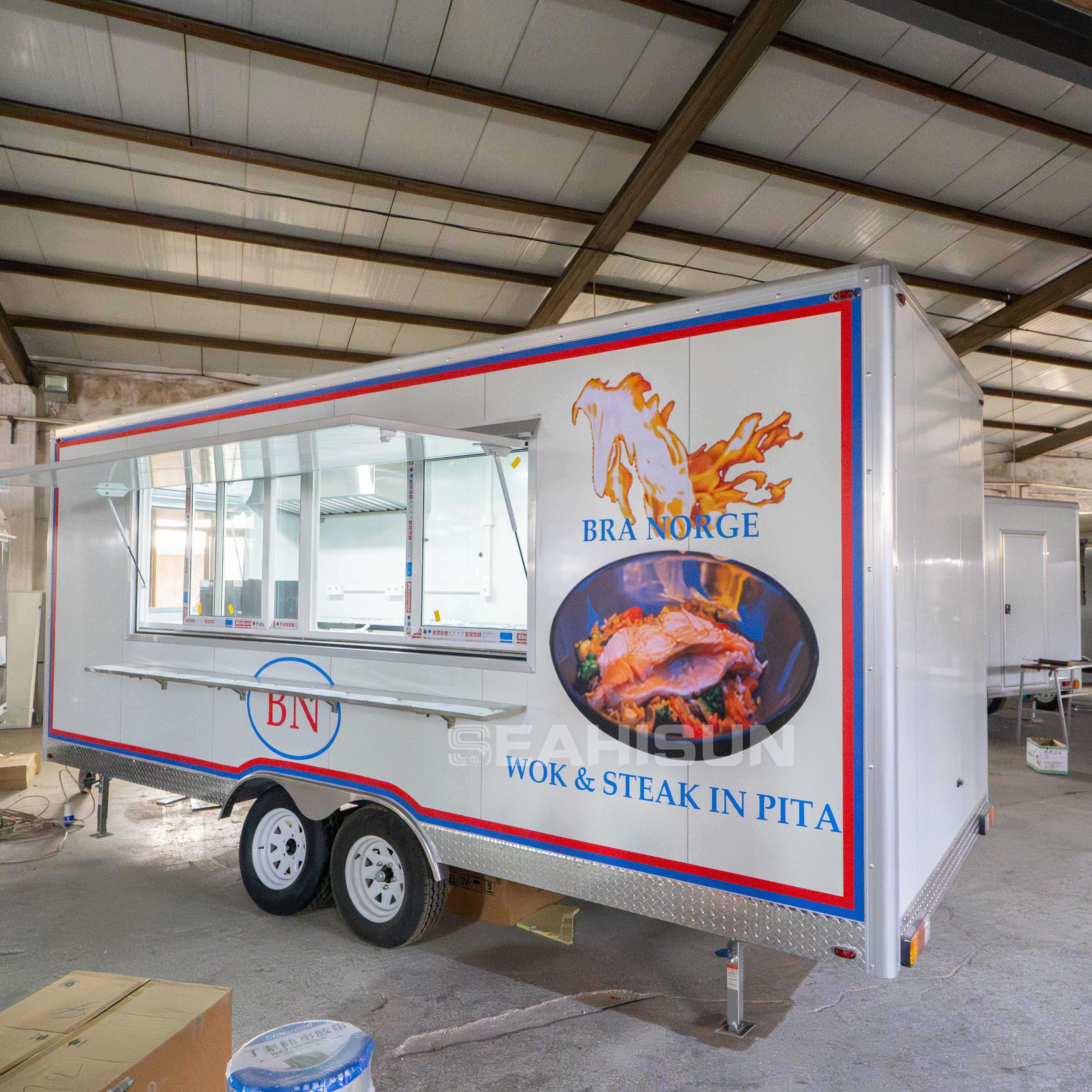 我们的餐车将创新设计与强大功能融为一体,为 21 世纪提供轻巧耐用的解决方案。它采用 TIG 焊接铝制框架和热镀锌底盘,采用高档铝包层和天然羊毛隔热材料,确保全年舒适。易于清洁的内部装饰有氧化铝或玻璃纤维,确保了高品质的外观,使我们的手工制作的食品车在市场上脱颖而出。