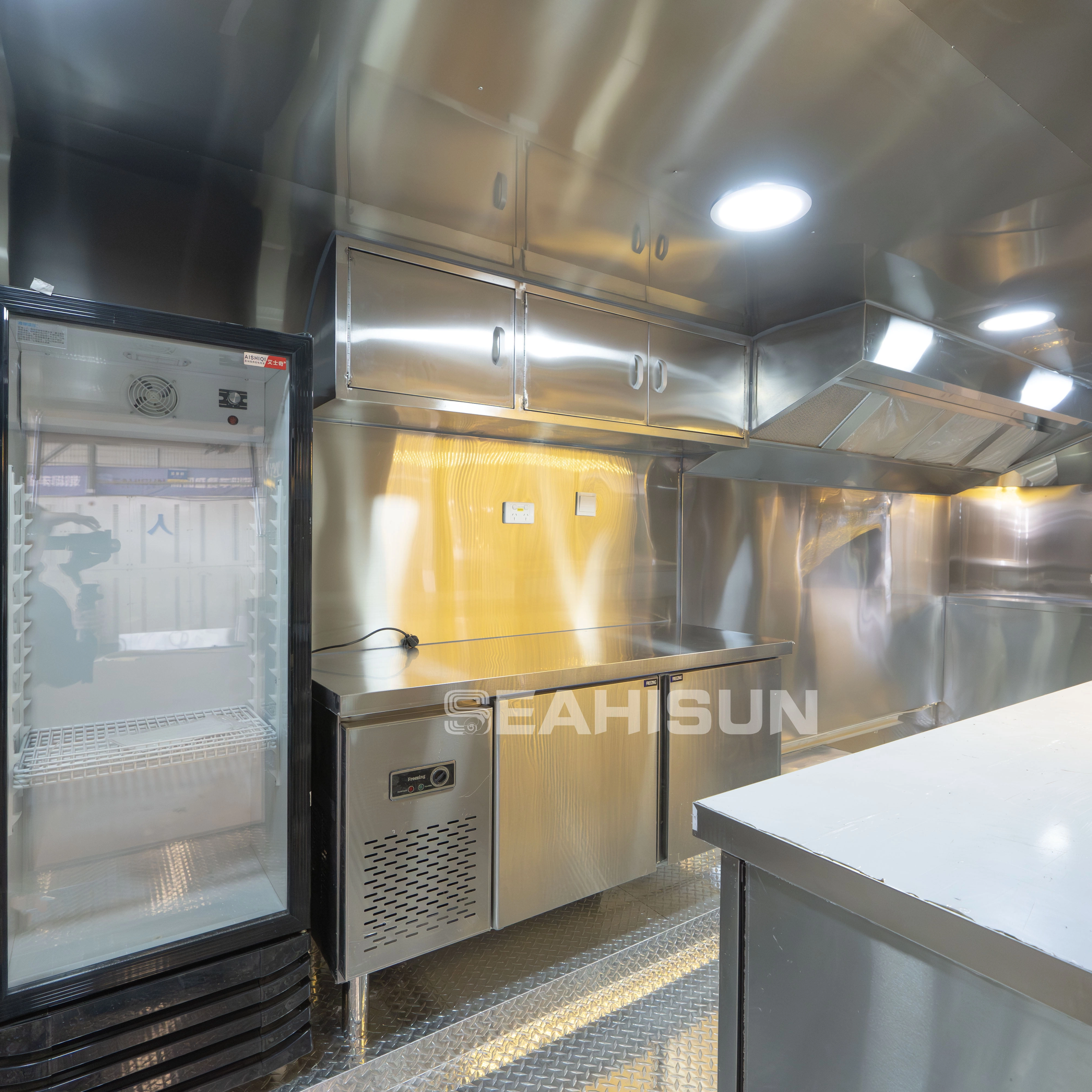 内部设计 内部可容纳冰箱、咖啡机、油炸锅、煎锅、排气扇、烤箱等各种烹饪设备,满足不同的商务需求。