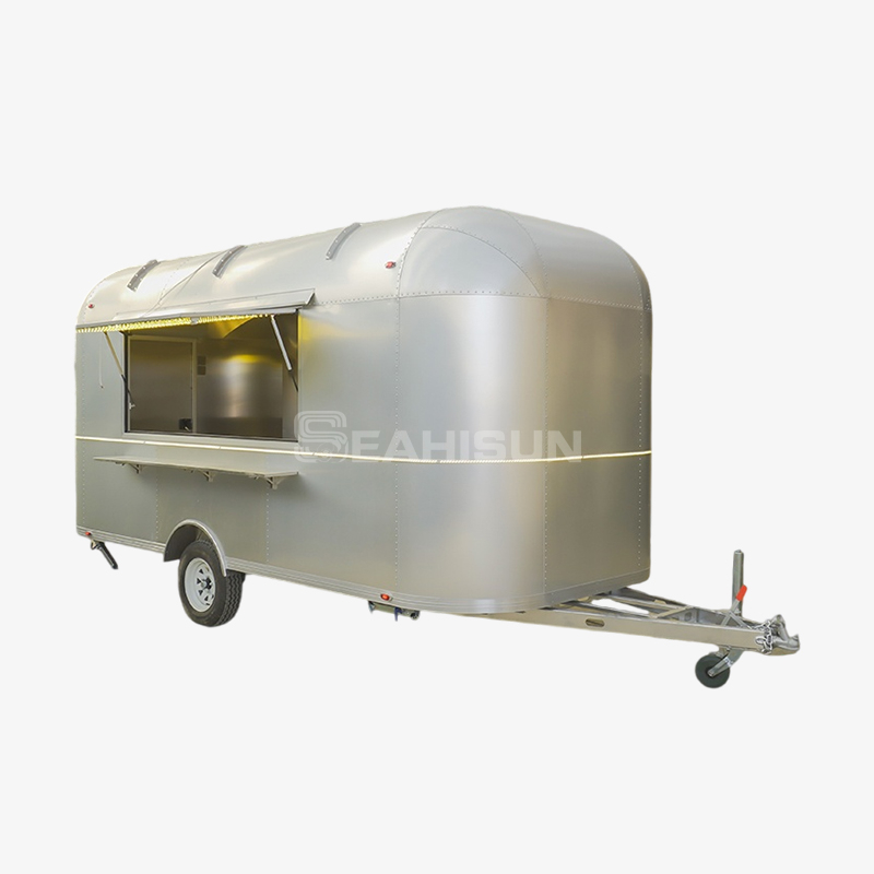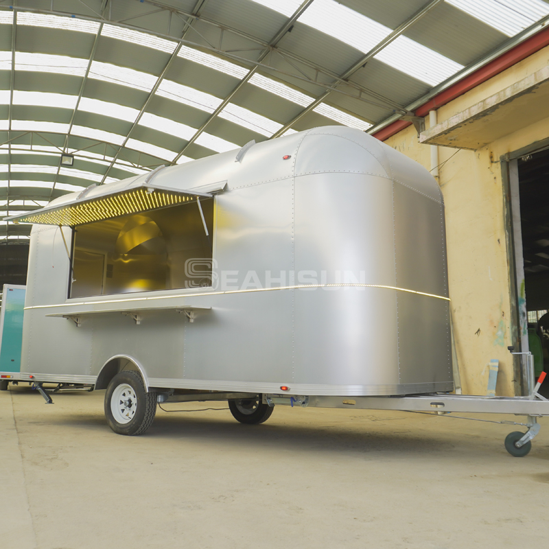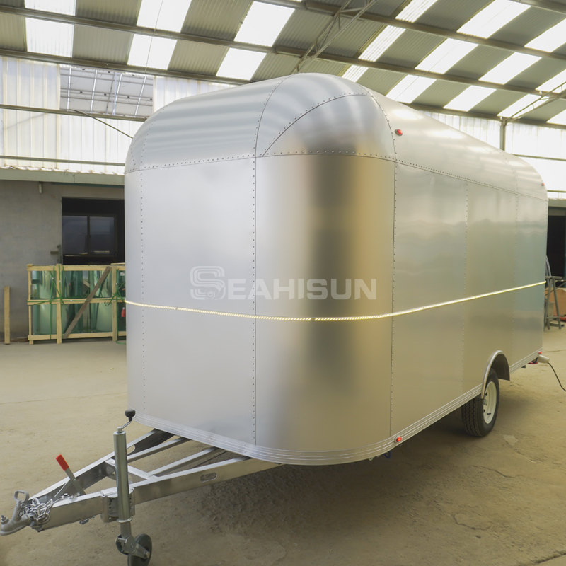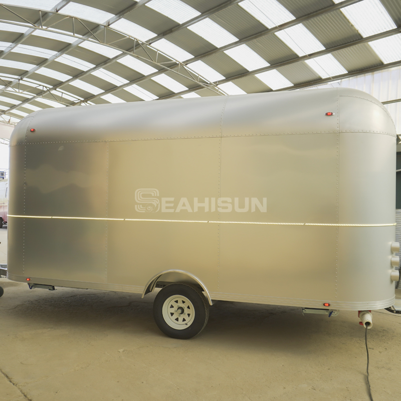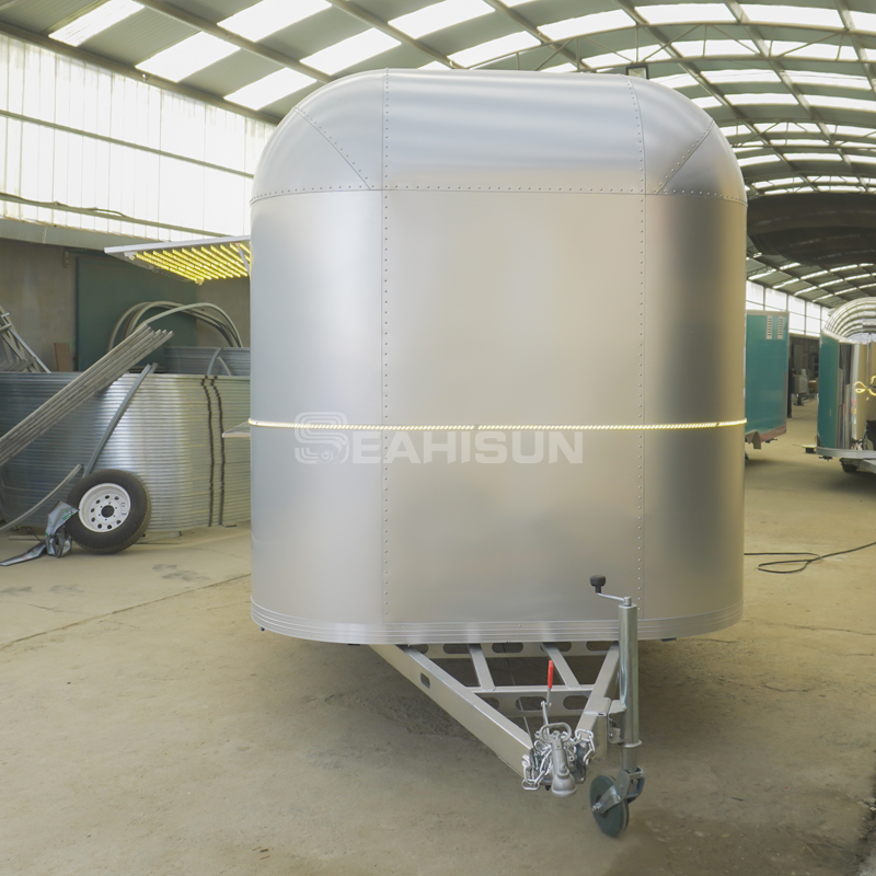 5m 氧化铝气流食品拖车是一款复古风格的移动厨房,将永恒的设计与现代功能相结合。这款拖车采用轻质铝合金制成,具有卓越的耐用性和燃油效率,非常适合越野餐饮或户外活动。其标志性的流线型造型和可定制的内饰营造出令人难忘的品牌形象,同时提供高品质的烹饪体验。