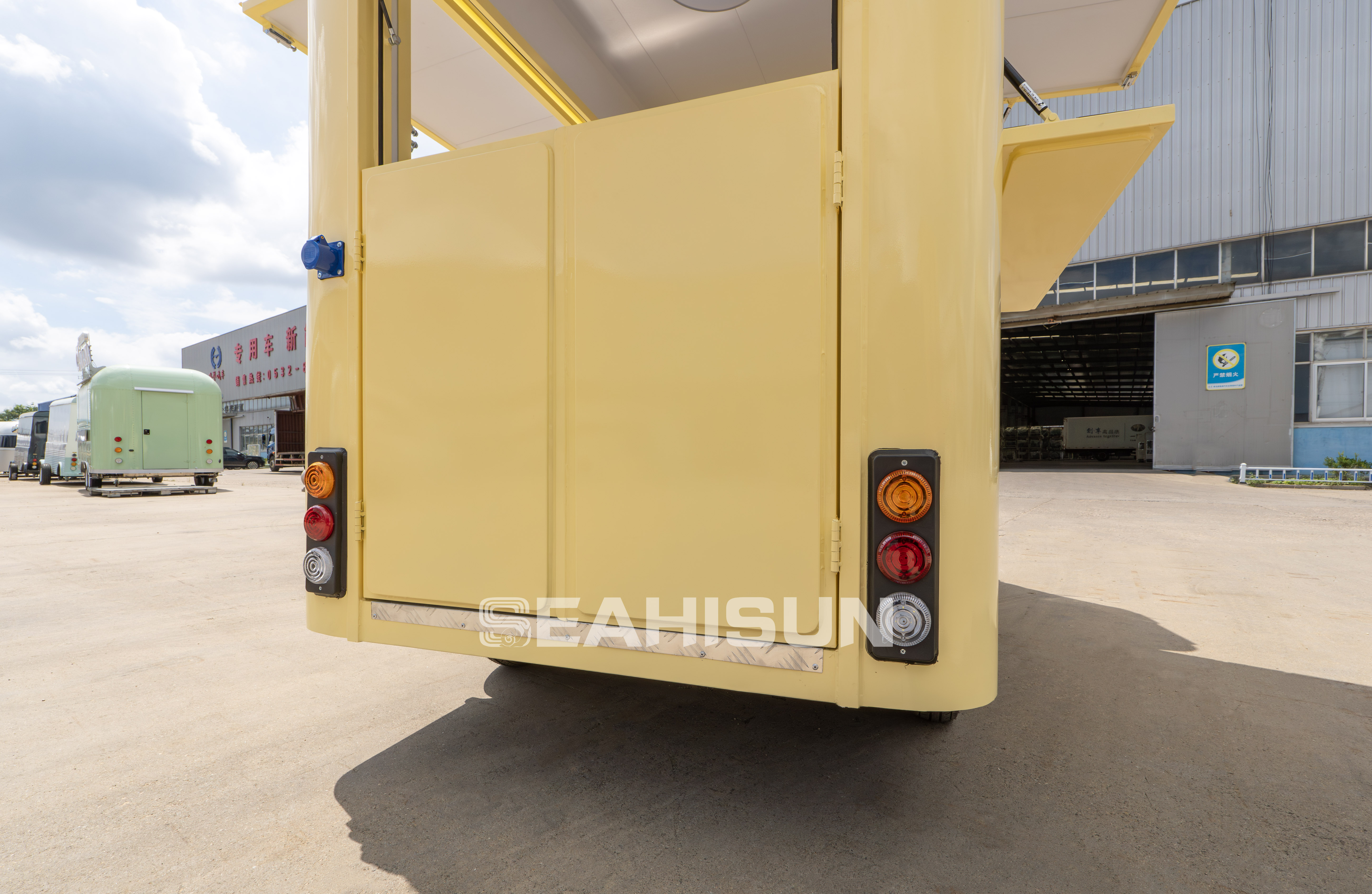 车辆后部通常有一个开口,可以轻松设置货架或展示产品。